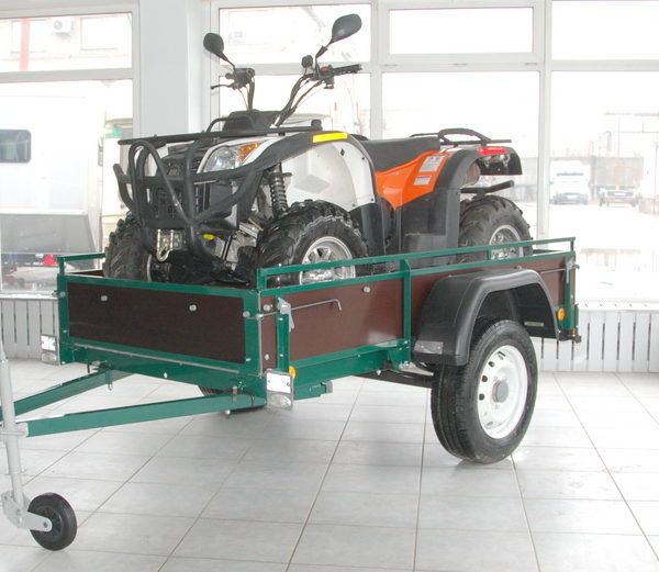При изготовлении бортов и днища кузова используется влагостойкая ламинированная фанера. Длина кузова 2 метра 38 сантиметров, ширина 1 метр 22 сантиметра, высота бортов 30 см. На прицепе для квадроциклов «Универсал» установлены релинги, которые позволяют фиксировать квадроцикл и увеличивают высоту продольных бортов на 8 см.