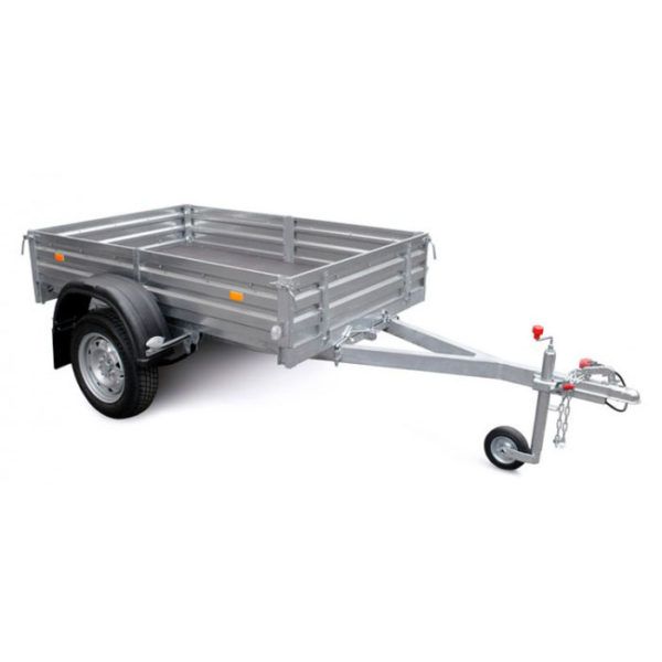 - В базовую комплектацию прицепа входит: колёса R13, один ряд бортов (290 мм), сцепная головка (750 кг), страховочные цепи (2 шт), держатель вилки, противооткатные упоры (2 шт).