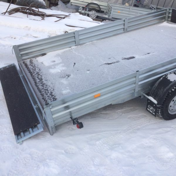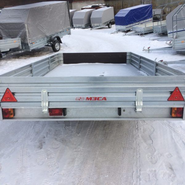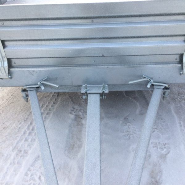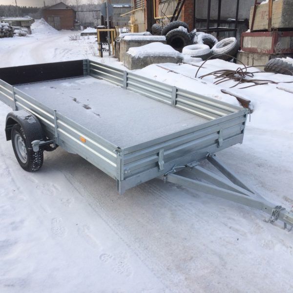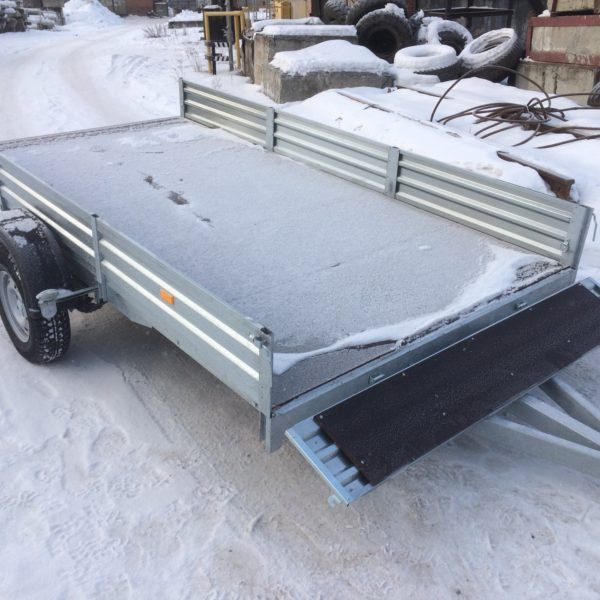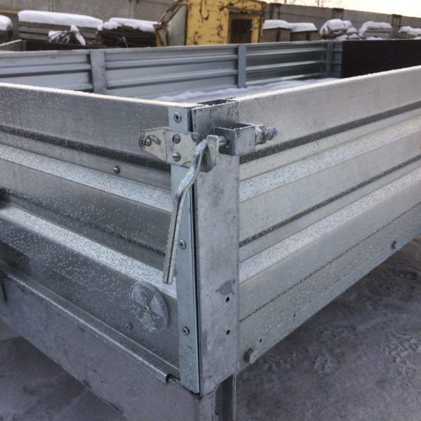 - Оцинкованные стальные борта с ребрами жесткости повышают устойчивость бортов при различных нагрузках. Стальные стойки бортов оборудованы петлями для крепления груза (4 шт). Передний и задний борт откидные.