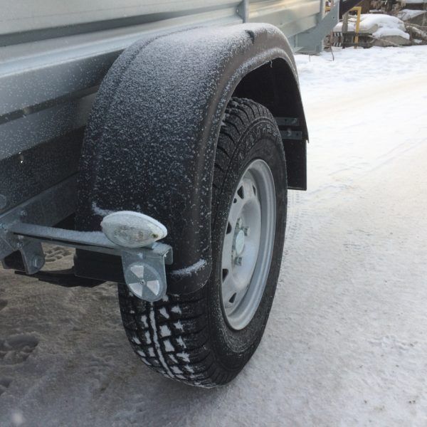 - В базовую комплектацию прицепа входит: колёса R13С, один ряд бортов (290 мм), сцепная головка (750 кг), петли для крепления груза (4 шт), страховочные цепи (2 шт), держатель вилки, противооткатные упоры (2 шт).