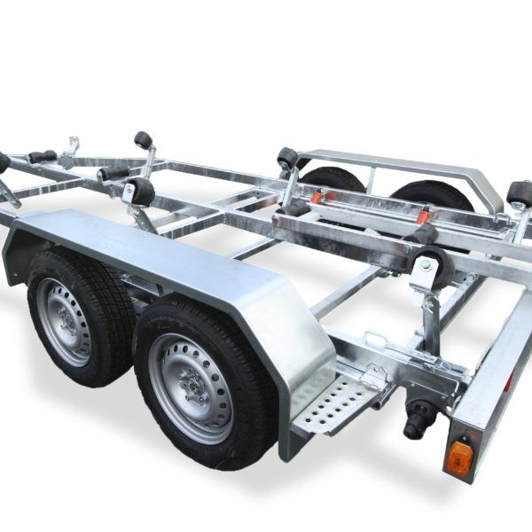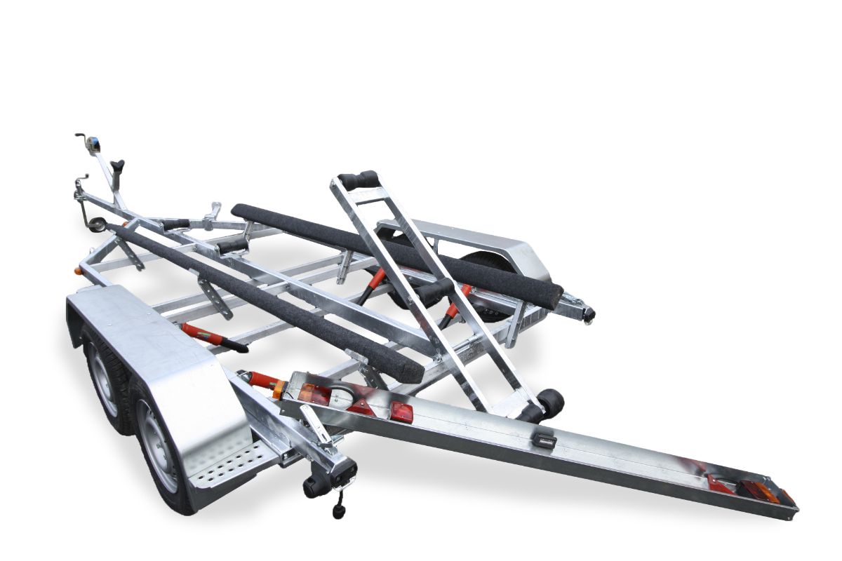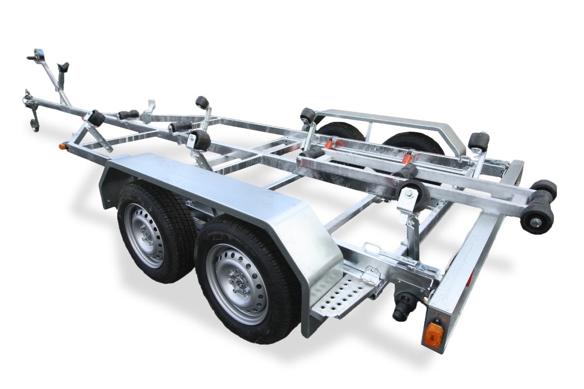 Прицеп двухосный, максимальная длина плав средства 5,8 м., грузоподъемность — 800 кг.
