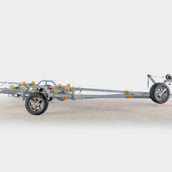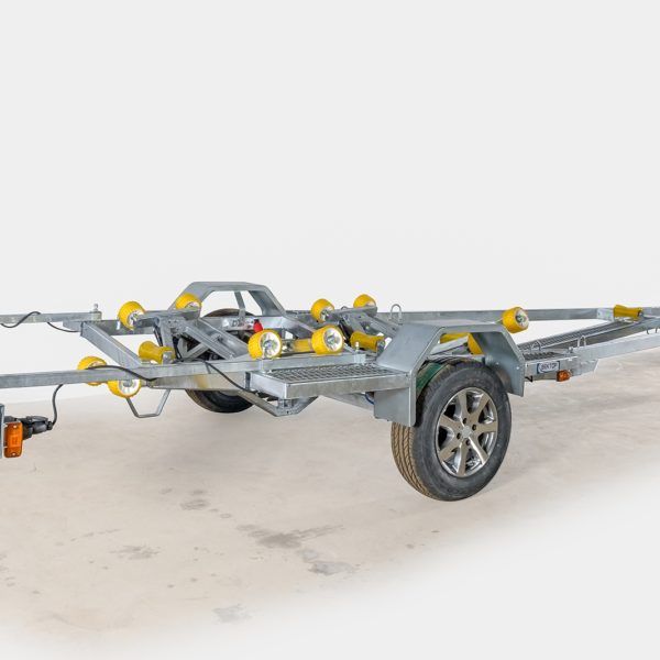 Прицеп одноосный, максимальная длинна плав средства 6,3 м., грузоподъемность — 915 кг.