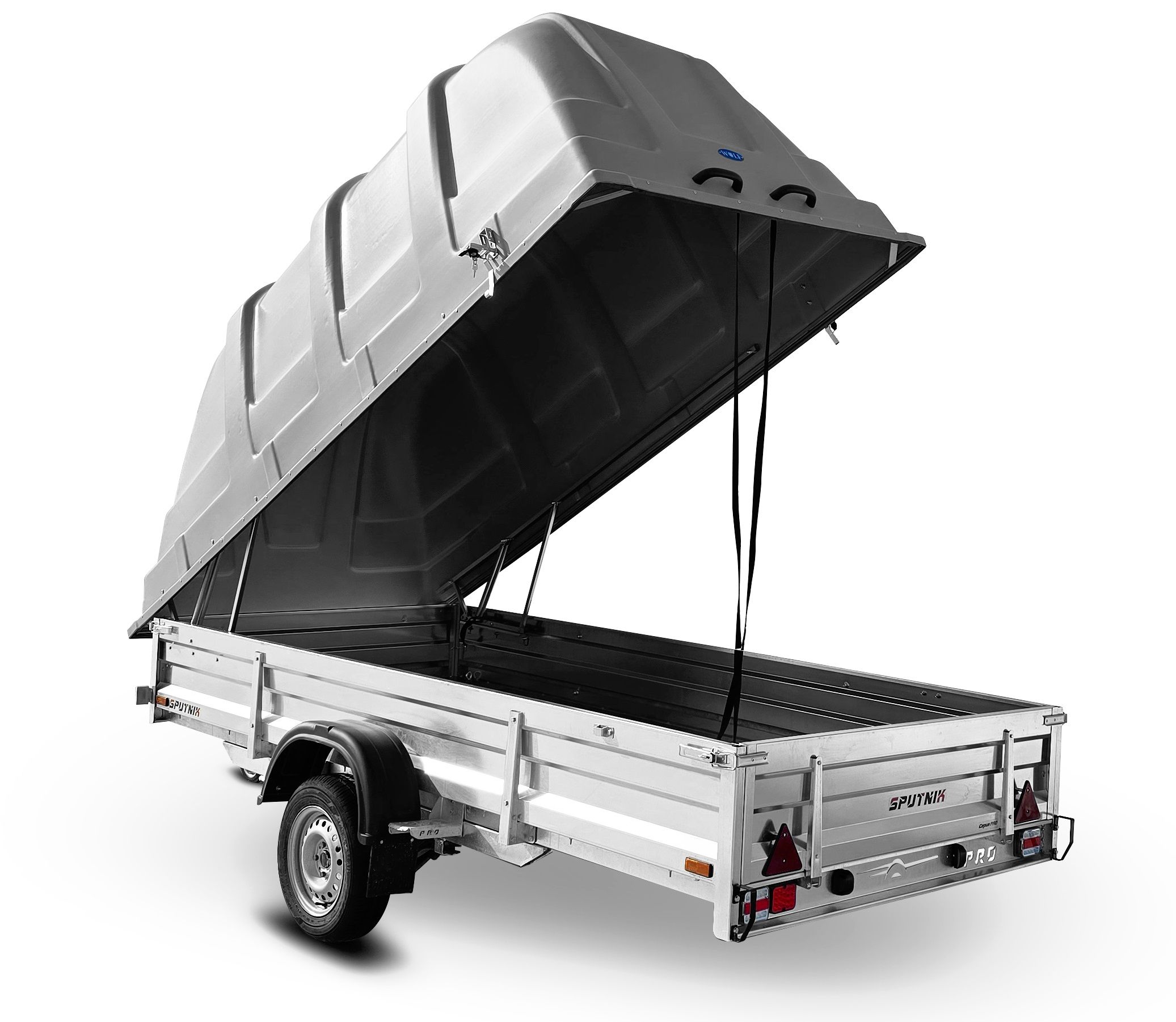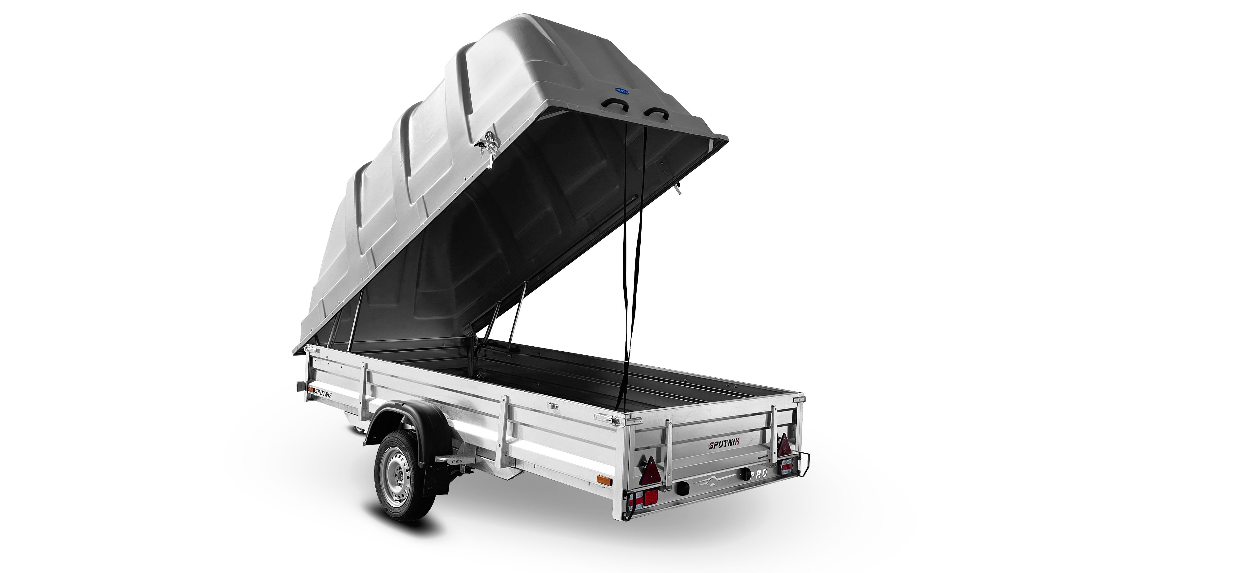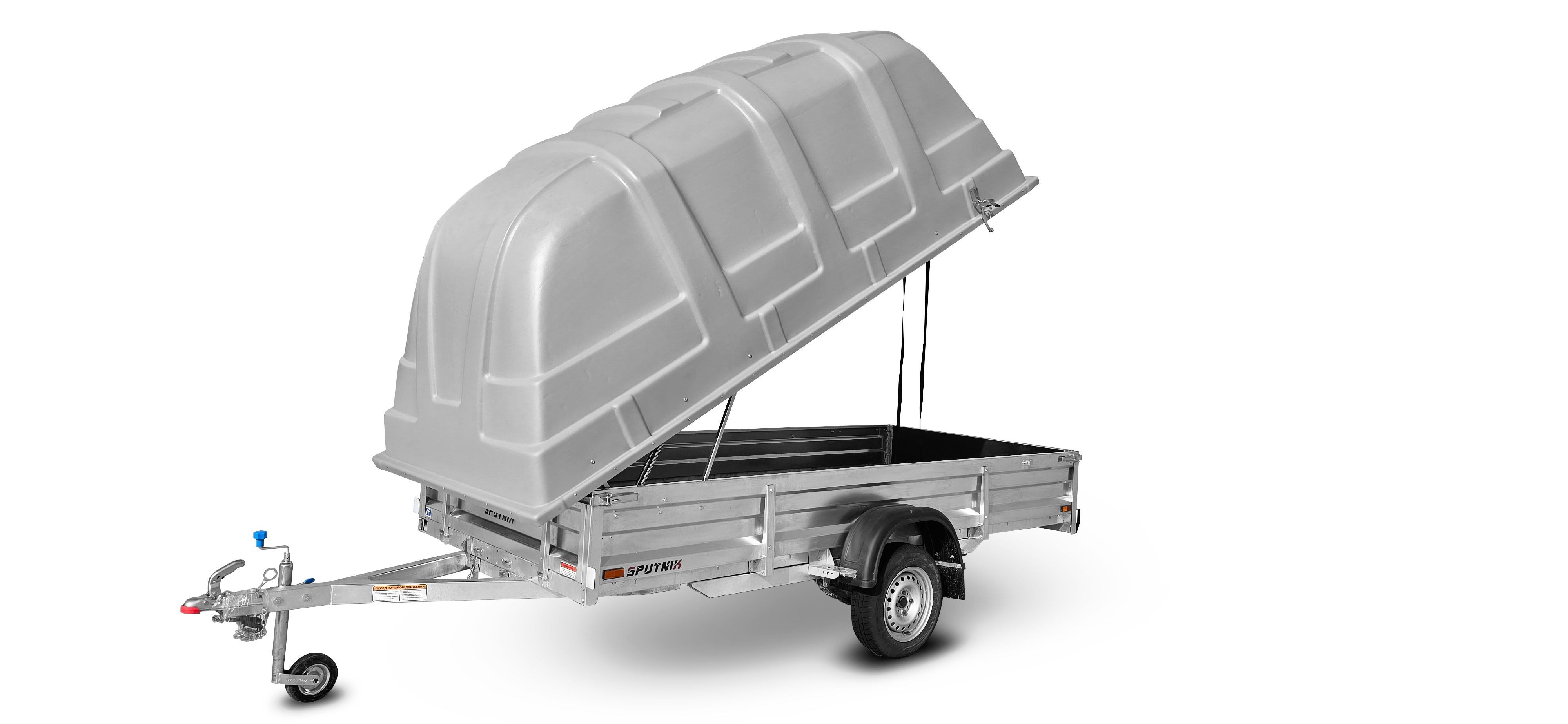 Прицеп «Спутник PRO» (3440x1500x380) пластиковая крышка, оцинкованная рама, с силовым подрамником, LED оптика НОВИНКА!!!
