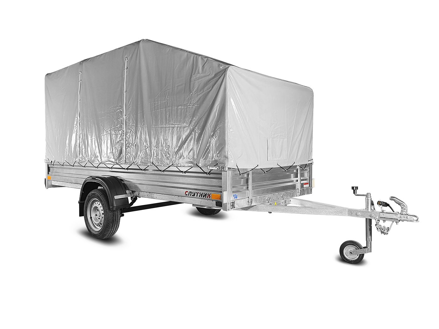 Прицеп «Спутник Expert» (2540х1440х330) оцинкованная рама, тент + дуги (НОВИНКА)